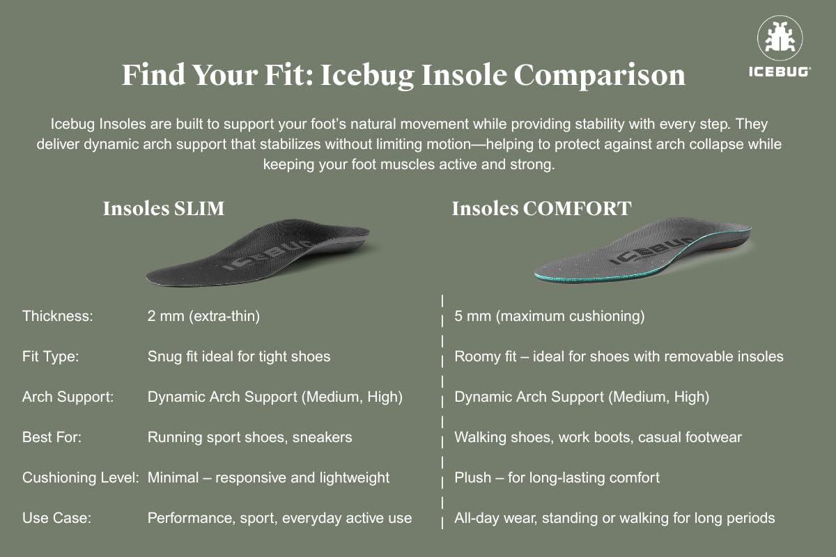 Comfort is the insole if you are looking for maximum cushioning combined with the dynamic support offered by Icebug Insoles.