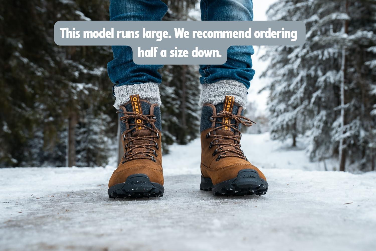 Icebug Mens Adak BUGrip Winter Hiking Boot with Carbide Studded Traction Sole(Coffee/Grey)