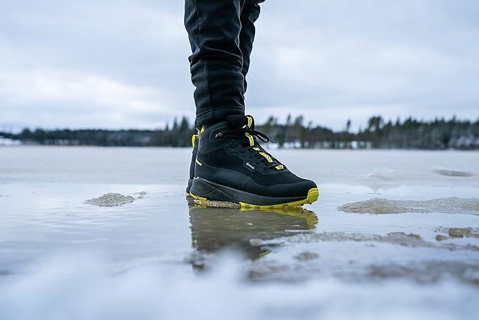 Icebug Mens Haze Mid BUGrip GTX Midcut Hiking Shoe with Carbide Studded Traction Sole(Black/Poison)