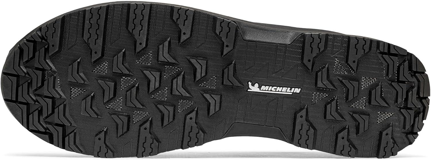 A mid cut boot for light fall and winter hikes. The non-studded Michelin Winter Com- pound rubber keeps its excellent traction properties in low temperatures, when normal rubber stiffens, to makes winter hiking comfortable and secure. The tread pattern has been upgraded with deeper lugs for better traction in mud and snow. The waterproof GORE-TEX membrane keeps slush out and feet dry. The shaft and the supportive mid- sole results in a stable boot suitable for light hiking. The BOA Fit System provides custom comfort with a smooth, even closure and no pressure points. The wide last, Ortholite Hybrid insock, and smooth liner keep feet happy on long, active winter days.