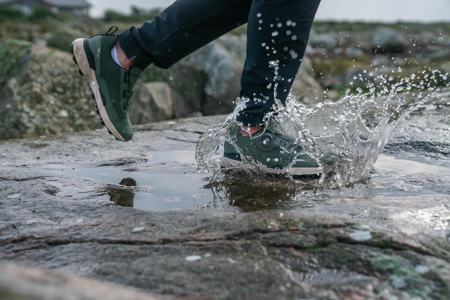 The Icebug Rover 2 is a versatile outdoor shoe designed to provide protection, comfort, and stability across various terrains and weather conditions. The upper is made from recycled, durable CORDURA polyester and features a waterproof GORE-TEX membrane, keeping feet dry while ensuring breathability. Reflective details enhance visibility in low-light conditions, adding to overall safety. The precisely adjustable BOA Fit System allows for a customized fit, ensuring optimal support. The RB9X outsole, combined with a specially designed tread pattern, delivers reliable traction on wet, dry, and uneven surfaces, including muddy or rocky trails. A fully cushioned midsole provides excellent comfort, even during extended wear. The high torsional stiffness ensures stability, while the generously designed toe box allows for natural foot movement. The Icebug Rover 2 is a durable and functional outdoor solution, combining long-lasting materials, innovative technology, and thoughtful construction for versatile use.