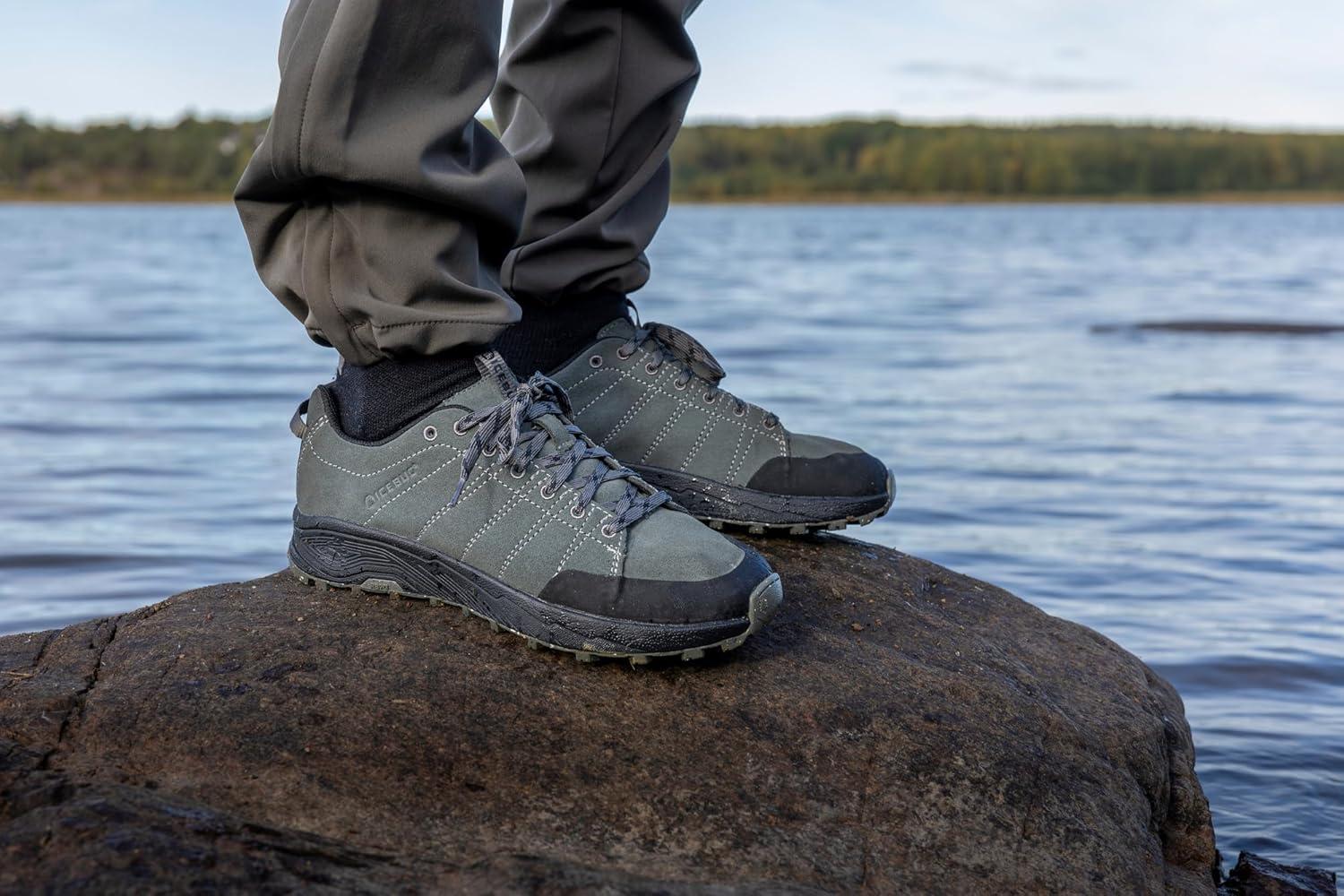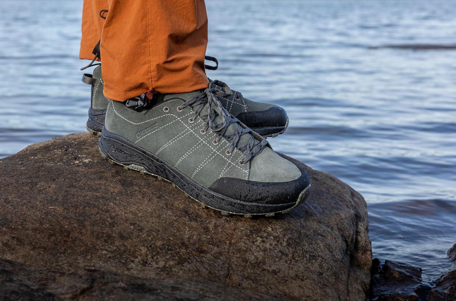 An active lifestyle requires shoes with the matching features. The Tind RB9X is a comfortable low-cut hiking shoe that is suitable for day hikes in the mountains as well as for short trips in the forest, city or park. The suede upper lasts – with proper care – a very long time and gets a beautiful patina over the years. (A patina is a surface that is aged naturally or artificially.) For the comfort factor in the shoe, the shaft and tongue have been lined with a soft material. In addition, the last is cut so that the foot feels optimally comfortable when moving. The RB9X outsole provides the best traction; on both dry and wet surfaces.